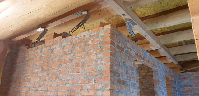 Uchwyty sprężynowe łaczące murowaną ścianą z drewnianym stropem